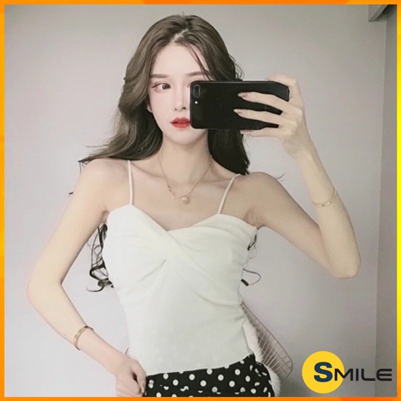 Smile Tank Top Olivia Bahan Rajut Pakaian Wanita Import Style Korea 4038