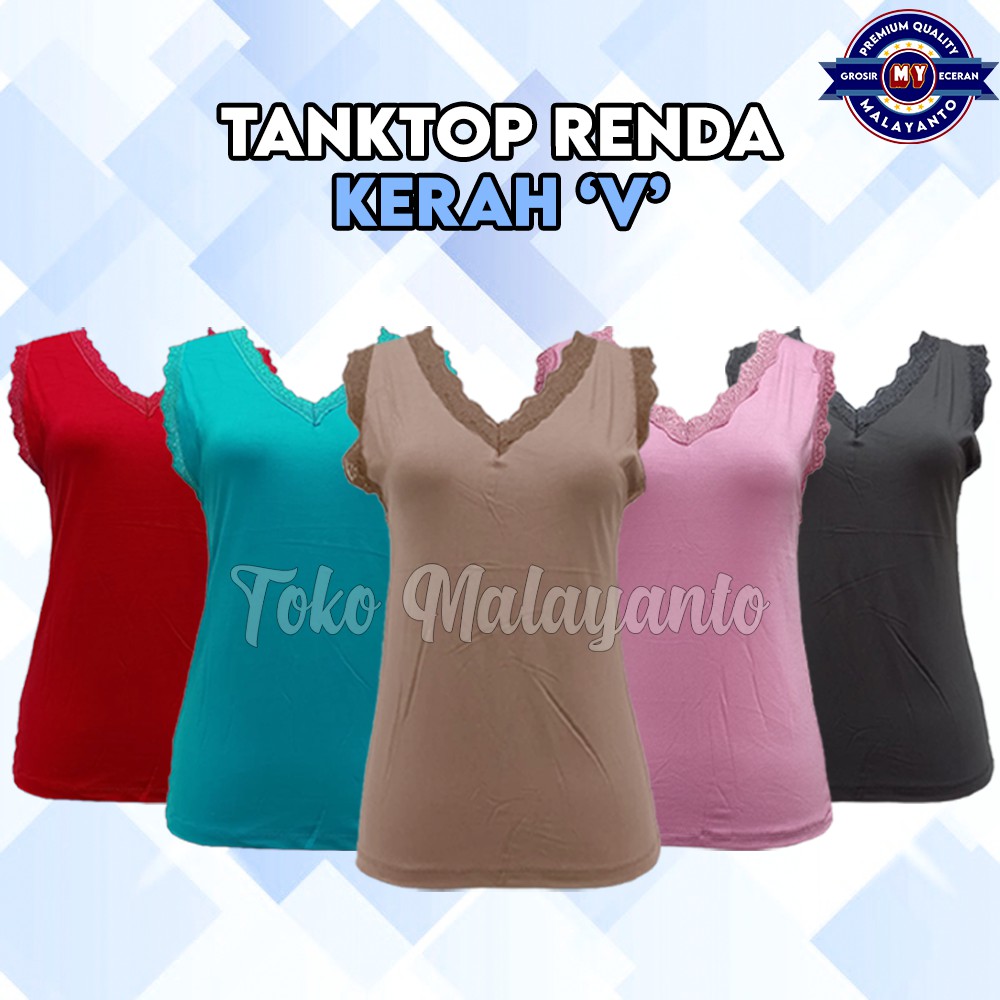 Tank Top Renda Kerah V Polos Warna Ukuran All size Ready Stok!!