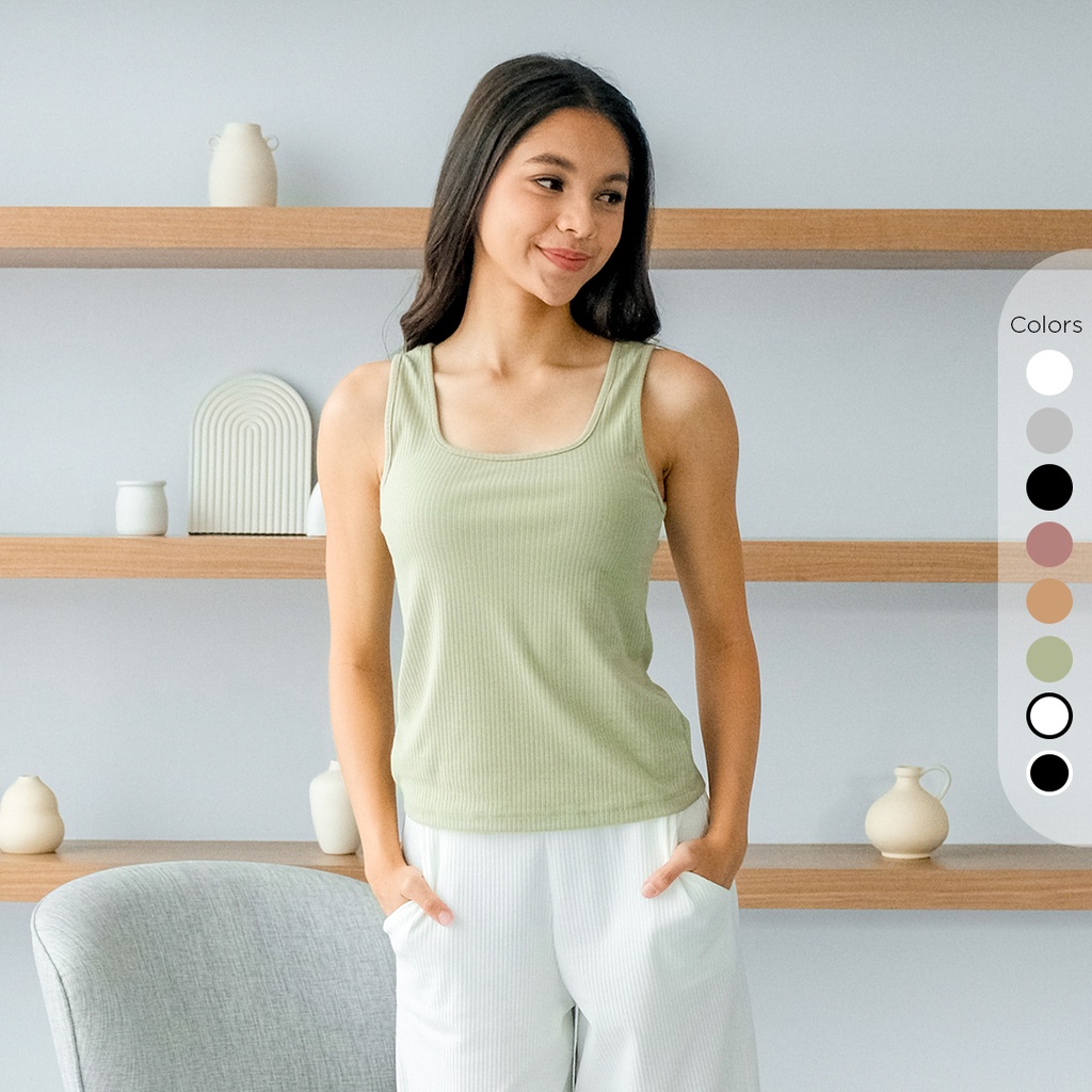 Isla Basic Tanktop Thick Strap Square Neck Stretch - Tanktop Kekinian - Pakaian Wanita - Inner - Singlet - Tank top