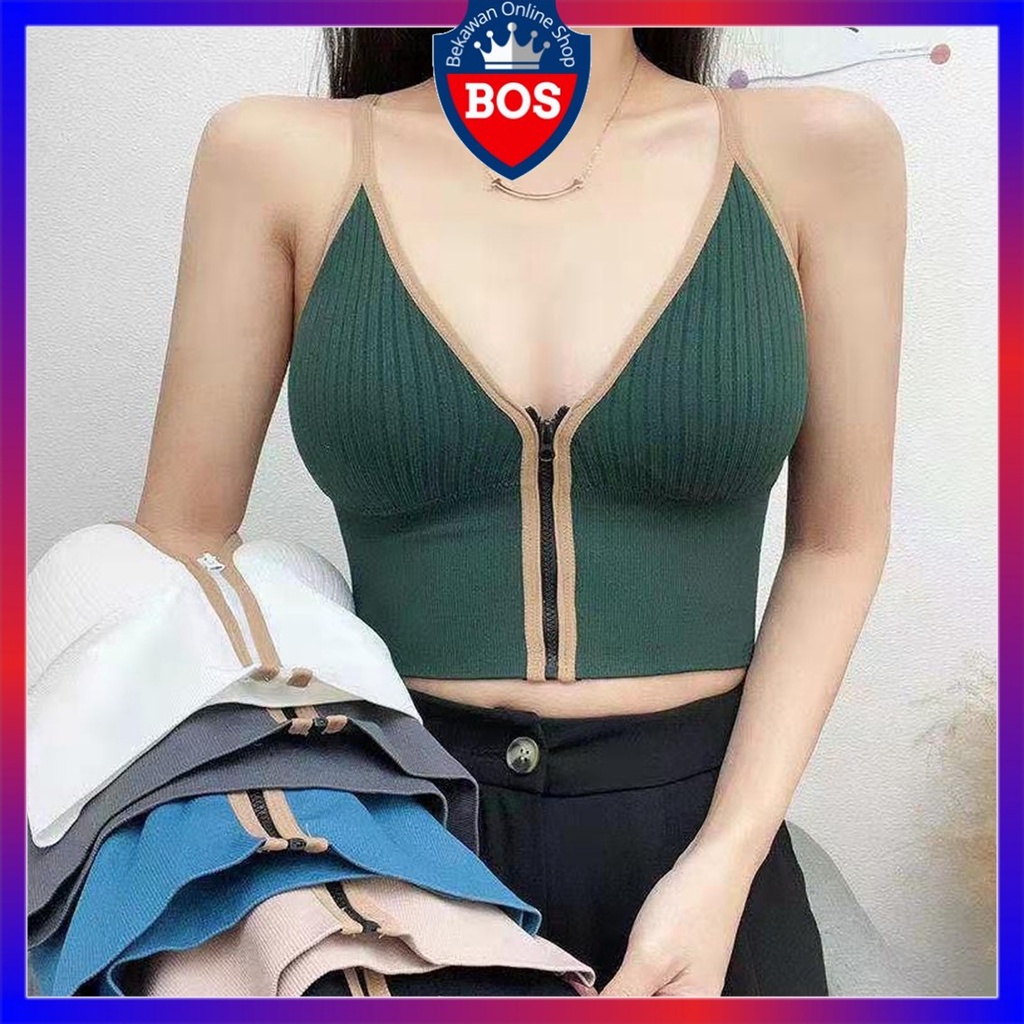 BOS Tank Top Yoga Wanita 6404 Bra Fashion Tanpa Kawat Elastis Pakaian Dalam Wanita Resleting